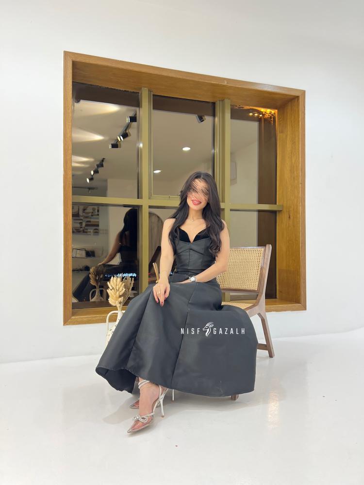 • مصنوعة من خامة ميكادو جوخ اسود من الصدر تفاصيل دقيقة جداً و محاكي إنحناءات الجسم.