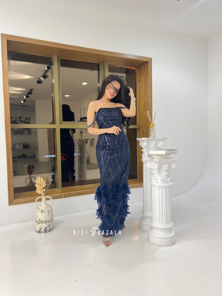 فستان سهرة صنع بخامة كلفه خرز راقي - ريش وتم قص وتفصيل المقاسات على وحدات القياس المعتمدة من شركتنا وتم ارفاق نموذج القياس في وصف المنتج.