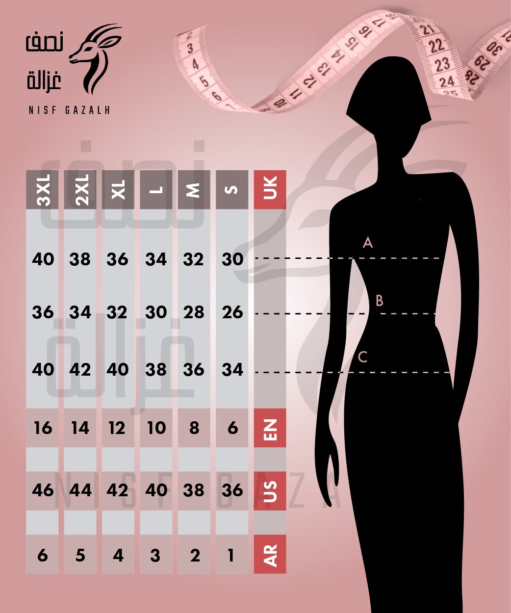 فستان ناعم ميد وتفصيل المقاسات على وحدات القياس المعتمدة من شركتنا وتم ارفاق نموذج القياس في وصف المنتج.